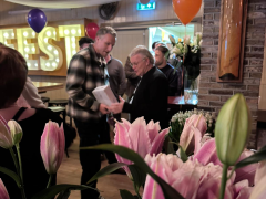 Afgelopen donderdag 5 maart heeft Dirk Bloothoofd tijdens een gezellige avond afscheid genomen van zijn collega’s en relaties. Ruim 42 jaar is Dirk werkzaam geweest als lelievertegenwoordiger. Dirk heeft een belangrijke bijdrage geleverd aan de bemiddeling van lelies bij CNB. Vanaf het prille begin is Dirk intensief betrokken geweest bij de ontwikkeling van de Roselily lelies en daar is tijdens de afscheidsavond uitgebreid bij stilgestaan. Daarbij is Dirk bedankt voor zijn inzet en het inwerken van zijn opvolger, Rick den Dulk.